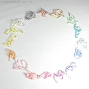 Zijden koorden Pongé met basis zijdekleuren verzadigd en pastel